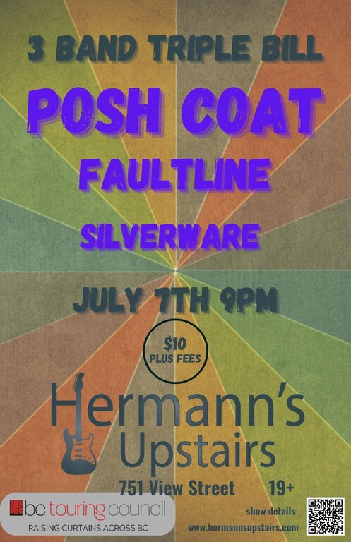 Posh Coat is a cold front of Arctic Monkeys from the north and a few breezy Strokes of musical inspiration from the east that have collided, forcing this three-piece band to put on their coats, turn up their amps and inject some heat into the Victoria music scene.