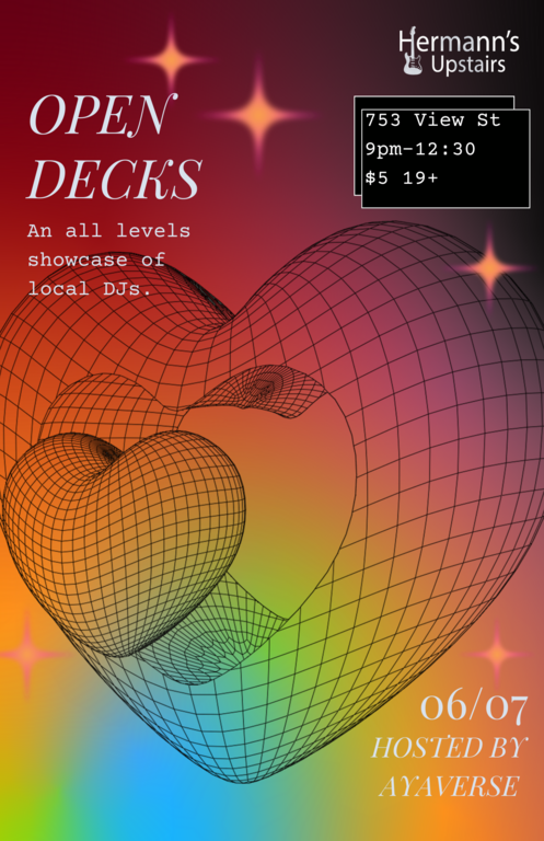 Open decks is a community club night focused around giving local DJ's the space to connect, dance and share music.