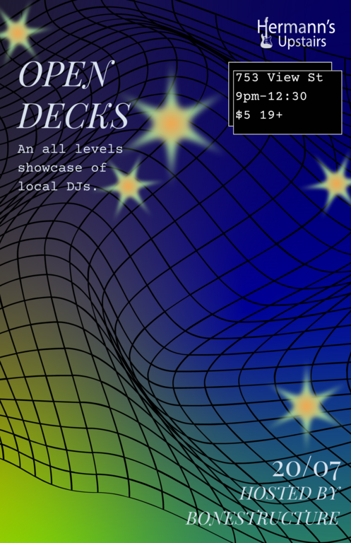 Open decks is a community club night focused around giving local DJ's the space to connect, dance and share music.