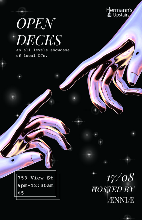 Open decks is a community club night focused around giving local DJ's the space to connect, dance and share music.
