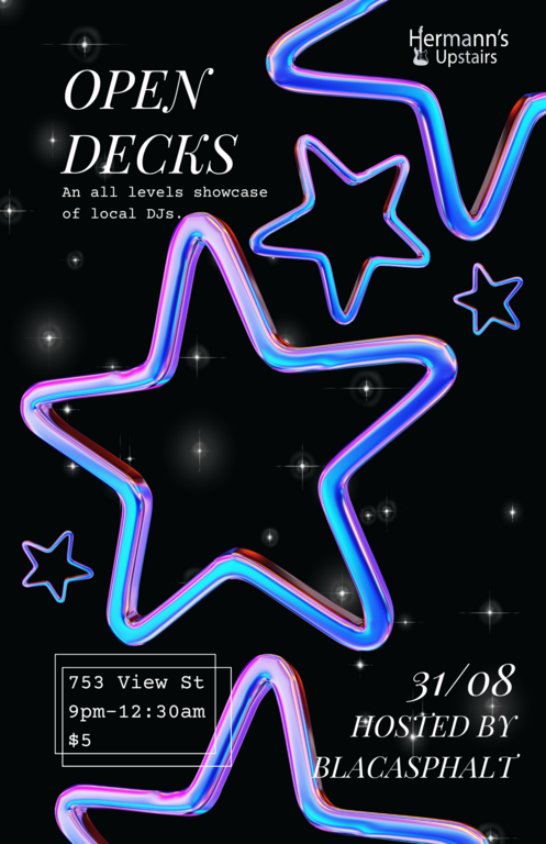 Open decks is a community club night focused around giving local DJ's the space to connect, dance and share music.