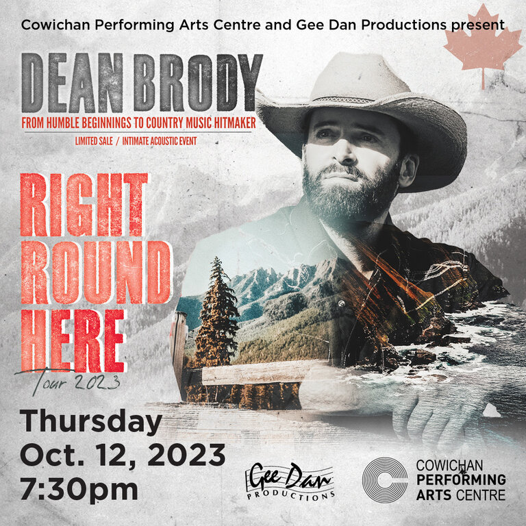The Cowichan Performing Arts Centre and Gee Dan Productions are proud to present Dean Brody Right Round Here Tour 2023 on Thursday, October 12 at 7:30pm. Join us for an intimate evening of acoustic guitar with Canadian country singer, Dean Brody.