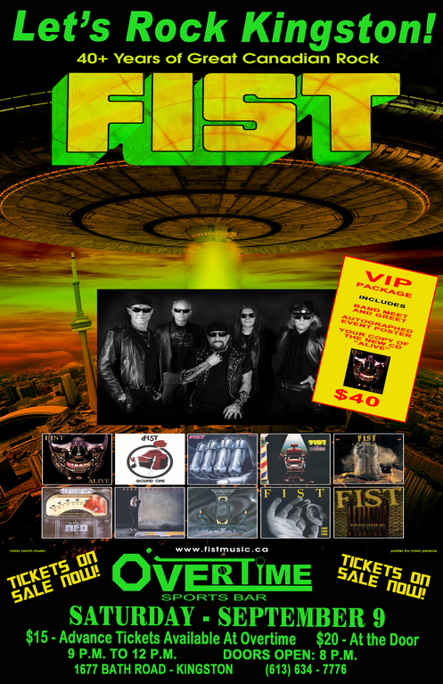 Fist brings a two hour music show of all their hits to Overtime Sports Bar, with music from 10 albums of rock, audiences will hear the hits "Thunder in Rock", "Better Way to Go",