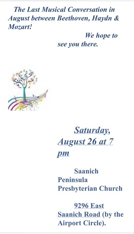 Sat. August 26th 2023 Saanich Peninsula Presbiteryan Church Victoria BC By Donation