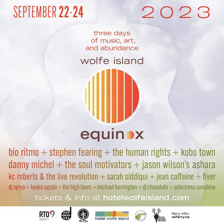 Taking place on scenic Wolfe Island near Kingston, Equinox is a brand-new three-day celebration of abundance featuring some of the very best in independent Canadian and international music from a diversely eclectic array of styles. Programmed and produced by Sebastian Cook (The BEAT Network), Laura Kelly (Many Moons Productions) and Chris Brown (Wolfe Island Records & Hotel Wolfe Island), Equinox is an exciting addition to the burgeoning creative commons and culture on Wolfe Island.