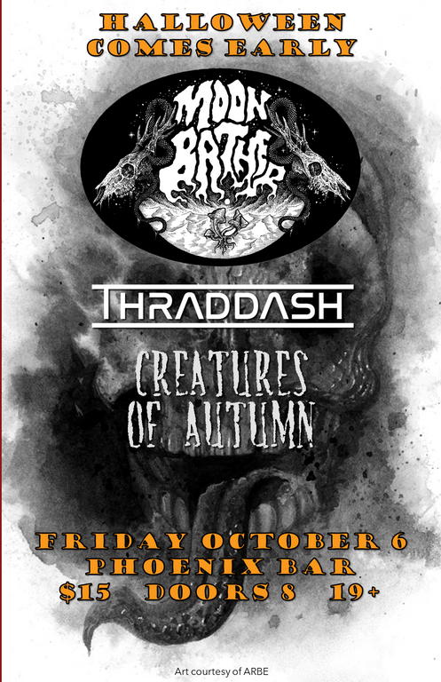 MOONBATHER, Thraddash, Creatures of Autumn @ The Phoenix Bar and Grill Oct 6 2023 - Jan 14th @ The Phoenix Bar and Grill