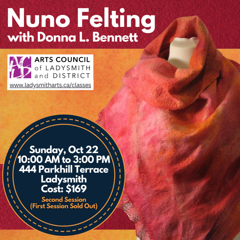 Your instructor, Donna L Bennett, is a textile artist and experienced educator. Participants of her popular workshops comment that she provides clear and comprehensive instructions, and she structures her classes in such a way that participants get to experiment with colour, layout, and design while learning felting skills and having fun.