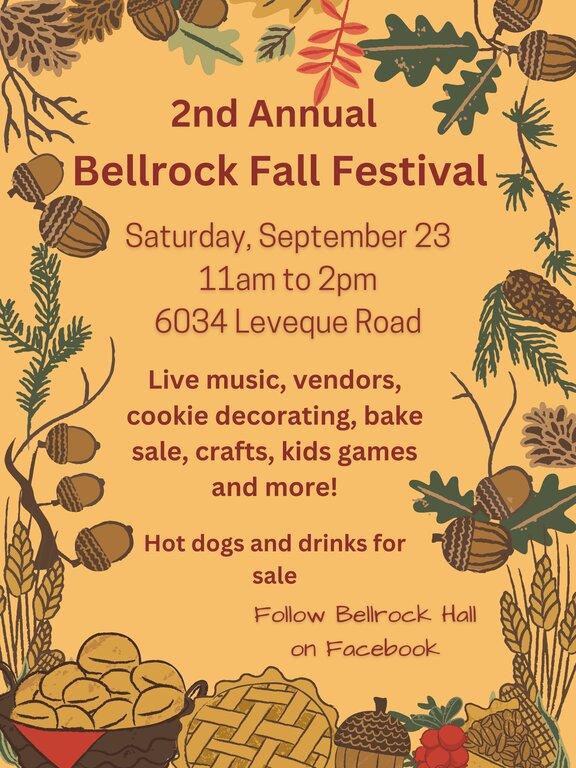 This is the second annual Bellrock Fall Festival! 100% of the proceeds go towards fixing the roof of the hall.