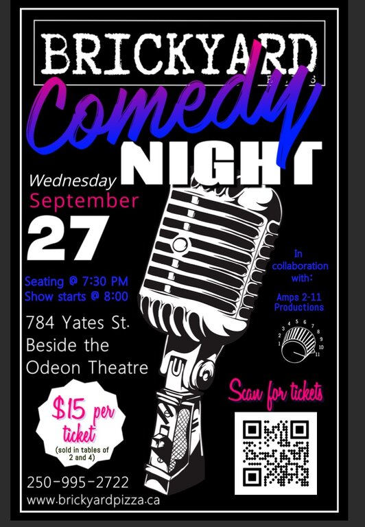 Brickyard Comedy Night is a monthly Live Comedy event deep in the heart of beautiful downtown Victoria featuring some of the funniest performers the city has to offer. Come for the comedy. Stay for the pizza and beer (or other drink of your choice- who are we to judge, really). This is a VERY intimate