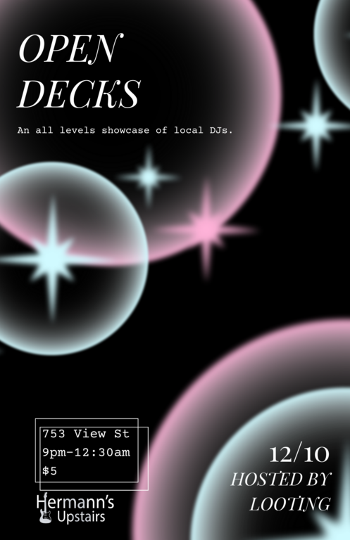 Open decks is a community club night focused around giving local DJ's the space to connect, dance and share music.