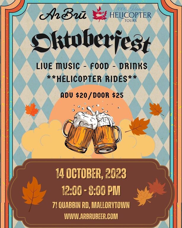 Sat. October 14th 2023 Arbrū Solar Brewery Mallorytown Ontario $20-$25