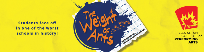 The English-language premiere of the 2022 Governor General's Literary Award Winner for Drama in French. The Canadian College of Performing Arts Studio Ensemble presents: "The Weight of Ants" by David Paquet; translated by Leanna Brodie.