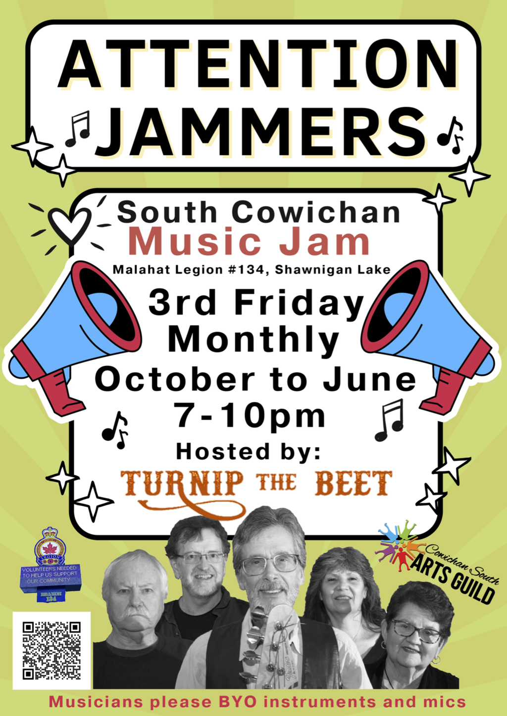 Hosted by "Turnip the Beet" band, Sponsored by "Cowichan South Arts Guild" and "Malahat Legion"