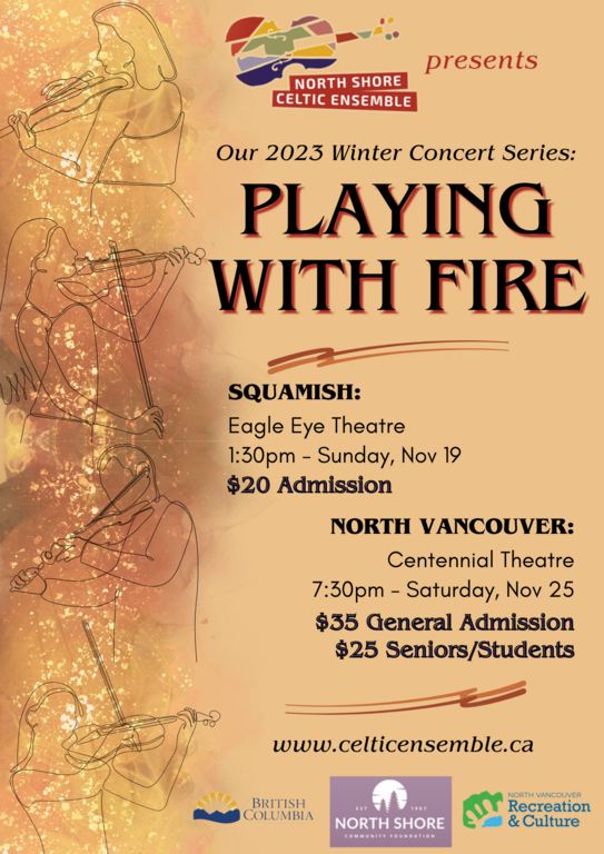 Experience an exquisite collage of melodies, from Northern Canada to the East Coast, Europe, and back to BC. Ignite your spirits, let sparks fly, and delight in a musical journey that sets the night ablaze with joy!