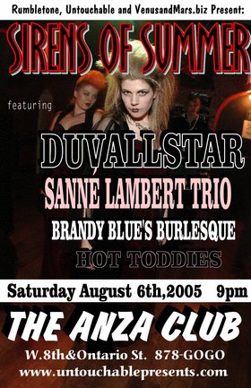 Girls Rock the Pic!NOTE THIS SHOW HAS MOVED FROM THE PIC TO THE ANZA CLUB!: Siobhan Duvall, Sanne Lambert Trio, Brandy Blue's Burlesque, Hot Toddies @ The Anza Club Aug 6 2005 - Feb 24th @ The Anza Club