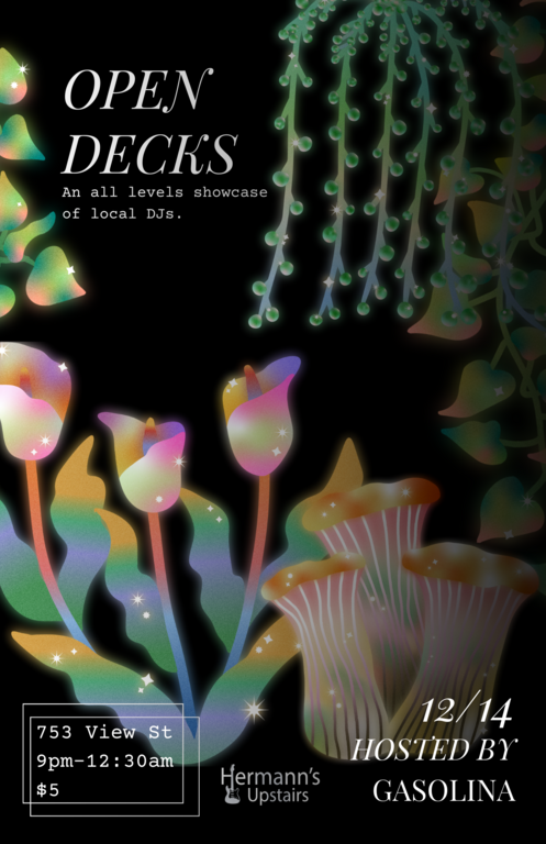 Open decks is a community club night focused around giving local DJ's the space to connect, dance and share music. Join us in celebrating one year of open decks!