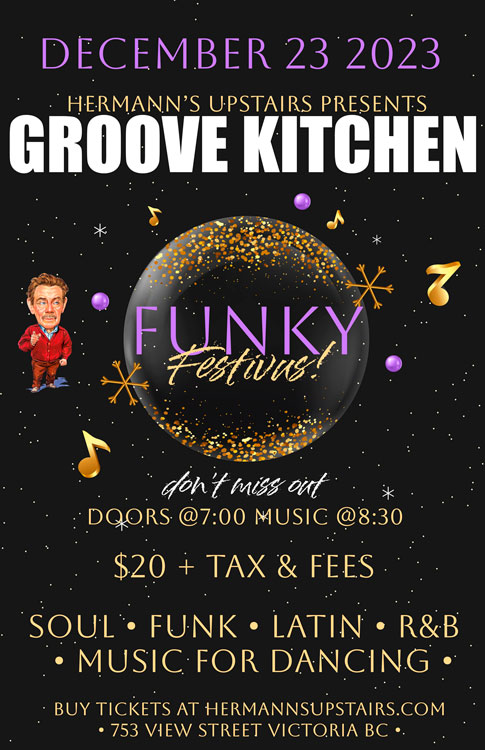 All dance hit show: It's time to get together and get down with those party pioneers, Groove Kitchen!!! We will fling the funk, slang the soul, lift the Latin, and produce the pop. Make this your dance in celebration of the season. Call your peeps and let’s Boogie!!!