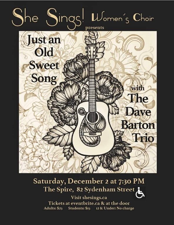 She Sings! will have the Dave Barton Trio as our special guest in a memorable evening of old and new jazz favourites. Dave Barton is a jazz guitarist, arranger, and composer who has been featured at the Prince Edward County Jazz Festival and whose works have been performed by the Toronto Jazz Orchestra, the Greg Runions Big Band, BrassWerks, and the Queen’s University Jazz Ensemble. Georgia on My Mind, Fly Me to the Moon, Stormy Weather, and a couple of Dave Barton jazz choral arrangements/compositions will open the show. The second half will take us into the upcoming holiday season and include I’ve Got My Love to Keep Me Warm; Christmas Time Is Here; and Hodie Alleluia by Kingston composer Mark Sirett. You won’t want to miss this jazzy start to the holiday season!