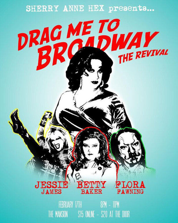 Drag Me to Broadway: Sherry Anne Hex, Betty Baker, Jessie James, Flora Fawning @ The Mansion Feb 17 2024 - Jan 1st @ The Mansion