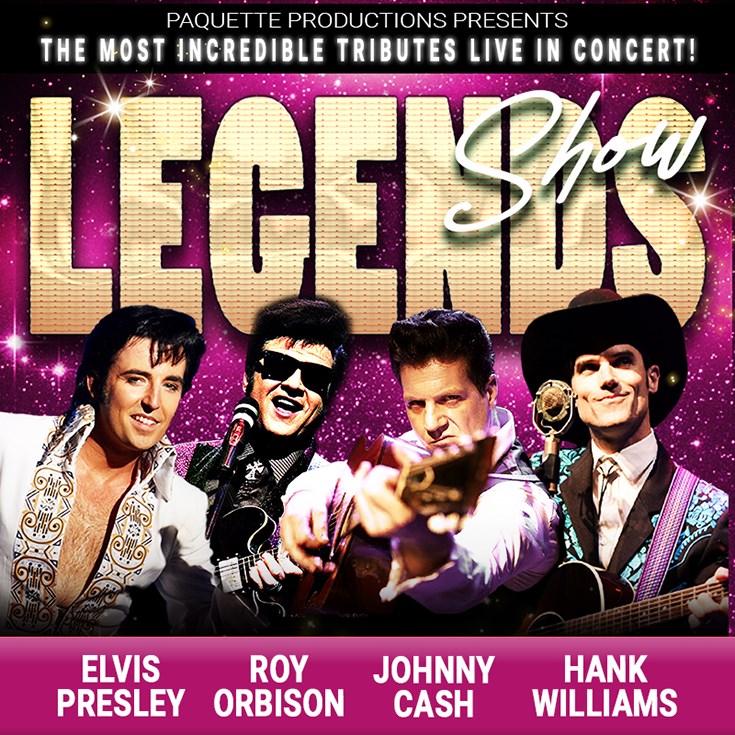 "Legends Show" brings you some of North America's most exciting performers live on stage. Accompanied by the “Rockin’ Royals Band”, this show will feature the most incredible Tributes to Hank Williams, Johnny Cash, Roy Orbison and Elvis Presley.