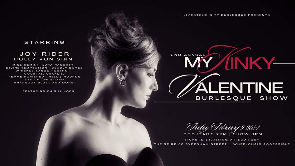 The sweethearts of Limestone City Burlesque are heating things up at for a Valentine’s Day show you’ll have to see to believe! Industry veteran Rhapsody Blue brings a heart-stopping sensual spectacular to The Spire, with the fun and feminist art of burlesque. This unforgettable show stars Burlesque Hall of Famer Joy Rider and the legendary Holly Von Sinn, alongside a jaw-dropping cast of dancers from Kingston, Montreal and beyond.