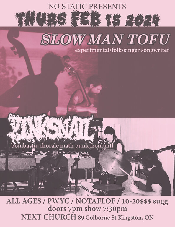 NO STATIC Presents: Pink Snail, Slow Man Tofu @ Next Church Feb 15 2024 - Feb 5th @ Next Church