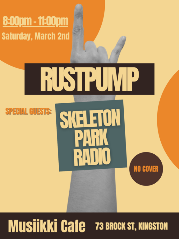 RustPump, Skeleton Park Radio @ Musiikki Café & Whiskey Bar Mar 2 2024 - Mar 13th @ Musiikki Café & Whiskey Bar