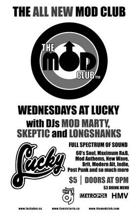Vic's hippest weekly. A night of everything from 60's Soul, Maximum R&B, Mod Anthems, New Wave, Modern Alt, Indie, Brit, Post Punk, and so much more, with DJs Mod Marty, Skeptic, and Longshanks. www.themodclub.com