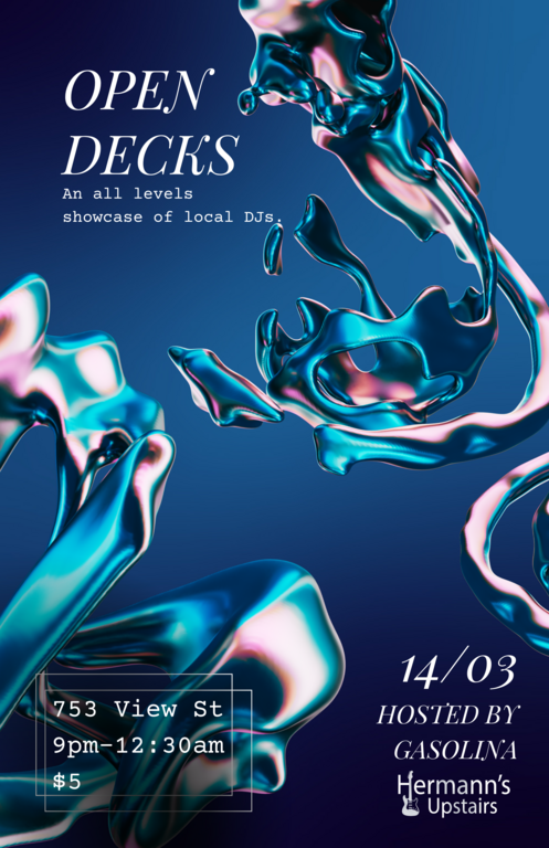 Open decks is a community club night focused around giving local DJ's the space to connect, dance and share music. Join us in celebrating one year of open decks!