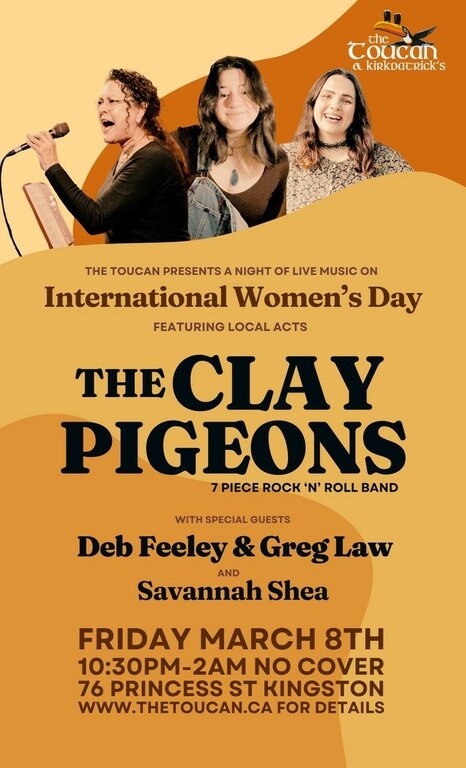 International Women's Day: The Clay Pigeons, Deb Feeley & Greg Law, Savannah Shea @ The Toucan Mar 8 2024 - Jan 17th @ The Toucan