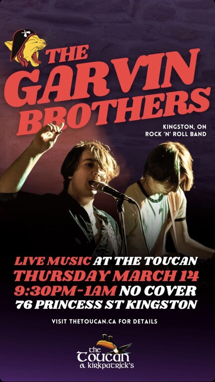 The Garvin Brothers are a high energy rock band from Kingston, Ontario. Drawing inspiration from the gritty soul of The Glorious Sons, the rock swagger of The Black Crowes, the heartfelt anthems of The Trews, and the rich, Americana sound of Chris Stapleton, The Garvin Brothers play a dynamic mix of both covers and originals.