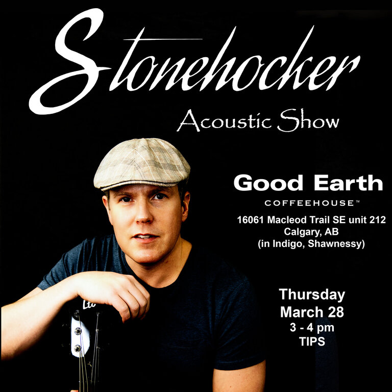 Stonehocker will be performing an acoustic set at the Good Earth Coffeehouse in Shawnessy (in Indigo) from 3 - 4pm on Thursday, March 28. Come on out and tip!
