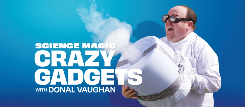 This year’s show is Science Magic - Crazy Gadgets: Donal turns engineer and makes some wonderful contraptions that you can build too. From potato rocket launchers, to giant smoke cannons, there are gadgets galore in this family fun show.