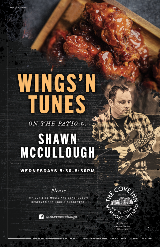 Visit The Cove Inn every Wednesday to hear Shawn McCullough play live on the patio as part of the “Wings ‘n Tunes” night. Show starts at 5:30pm.