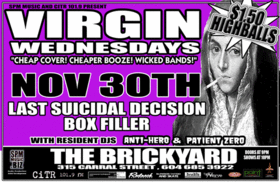 VIRGIN WEDNESDAYS: LAST SUICIDAL DECISION, Dr. Roid's, War Amp , DJ Ant1her0 and patient Zero @ The Brickyard Nov 30 2005 - Jan 14th @ The Brickyard