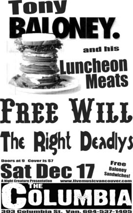 Tony Balony and the Luncheon Meats, the right deadlys, FREEWILL @ The Columbia Dec 17 2005 - Jan 15th @ The Columbia
