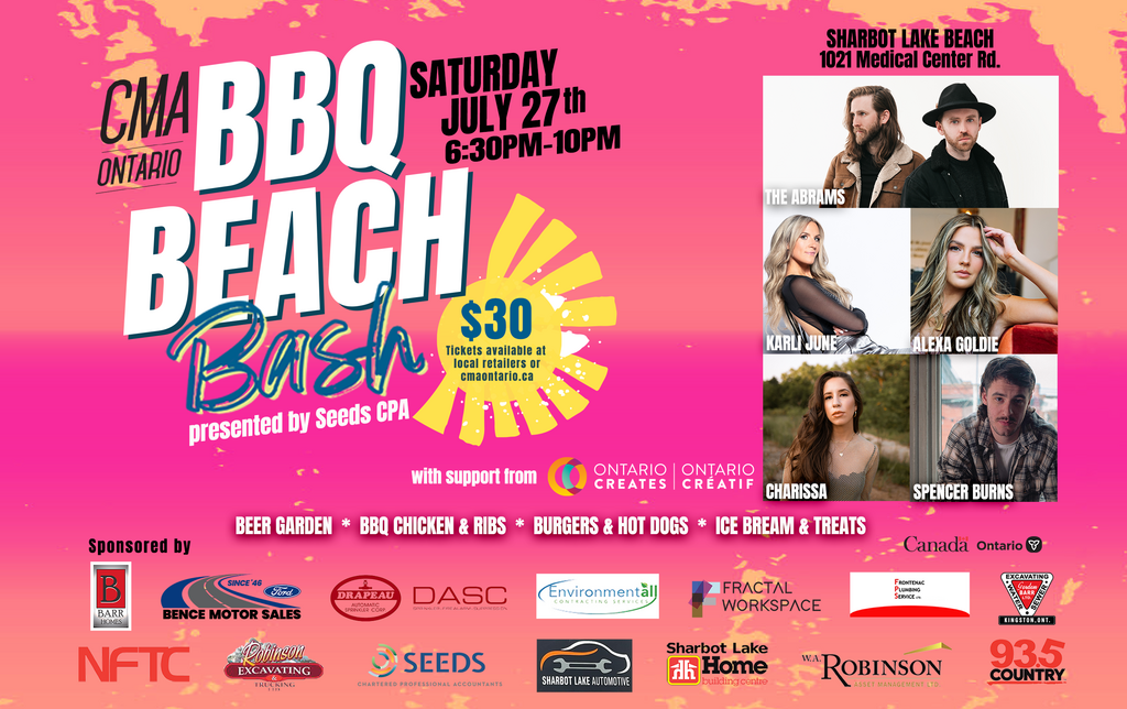 CMA Ontario BBQ Beach Bash: The Abrams, Karli June, Alexa Goldie, Charissa, Spencer Burns @ Sharbot Lake Beach Jul 27 2024 - Jan 3rd @ Sharbot Lake Beach