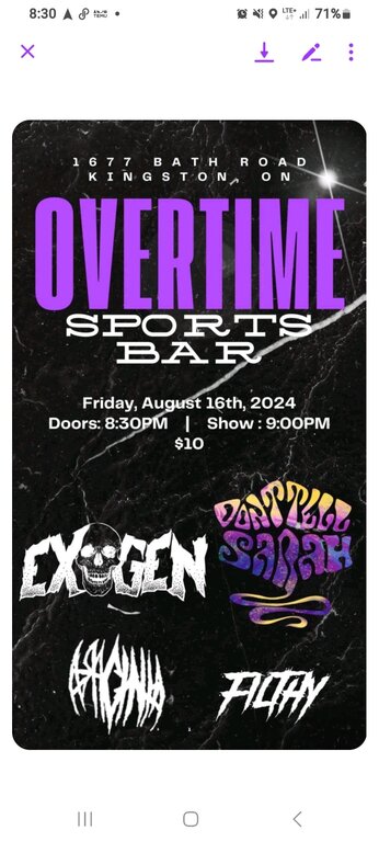 Filthy Band & Don't Tell Sarah Present: Exogen, Don't Tell Sarah, Arachnia, Filthy @ Overtime Sports Bar Aug 16 2024 - Jan 6th @ Overtime Sports Bar