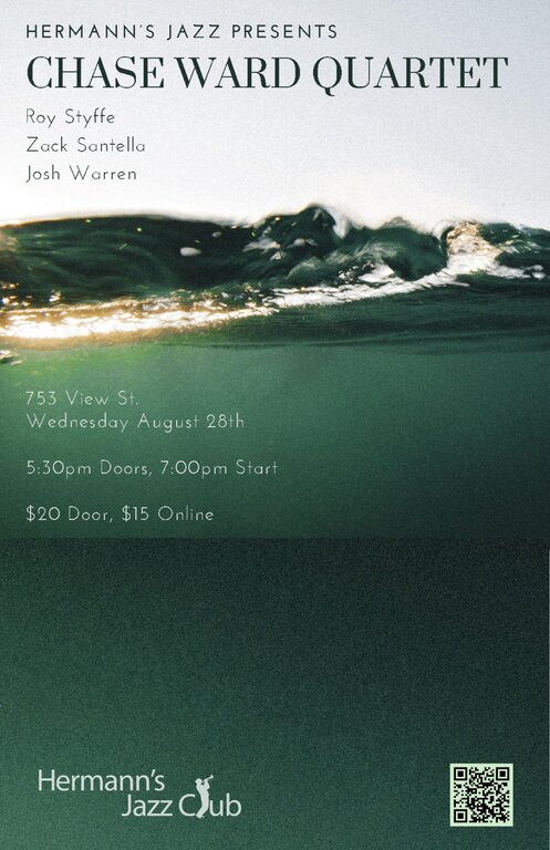 Canadian drummer, Chase Ward is a dynamic and multi-faceted musician, dedicated to the art of storytelling and improvisation. Leader of the Chase Ward Trio, Ward has logged numerous hours playing shows across Canada, ensuring that each show is different from the next. Originally from Victoria, BC, Ward is now based in Toronto as he finishes his Bachelor in Jazz Performance. Returning home to Victoria for a one-night-only performance, Ward will be joined by Roy Styffe (Saxophone), Zack Santella (Piano) and Josh Warren (Bass) playing a mix of Contemporary and Latin Jazz music. You won't want to miss it.