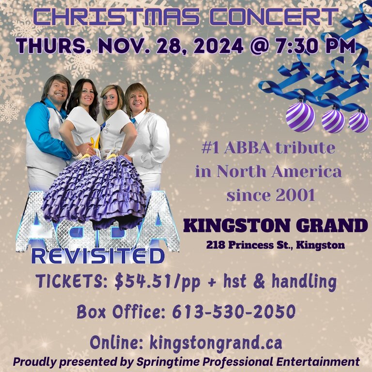 ABBA REVISITED Christmas Concert will have you singing along and dancing in the aisles. Perfect harmonies, wonderful musicianship, splendid costuming including Christmas outfits, multi-media presentation. All the hits you have come to know and love, along with a smattering of seasonal tunes.