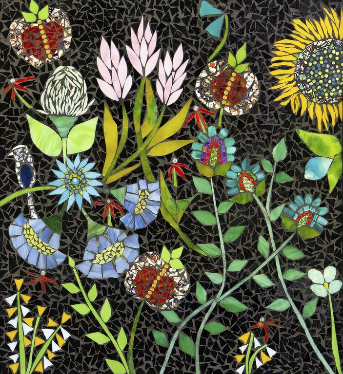 “The act of transforming little pieces of disparate glass into a 'painting' strikes me as magic. Stained glass offers a glorious colour palette and an equally wide range of textures. I am especially drawn to the reflective nature of glass, the way it creates movement and a feeling of 'aliveness.' As an avid gardener, the colours, textures, and shapes of the flowers in my landscape intrigue me, particularly the impact of light and contrast.” Visit her new website at veronicascottmosaics.ca.
