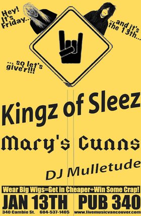 FRIDAY THE 13TH Just give'r 80's METAL NIGHT with: Kingz of Sleez, Mary's Gunns, DJ Mulletude @ Pub 340 Jan 13 2006 - Feb 7th @ Pub 340