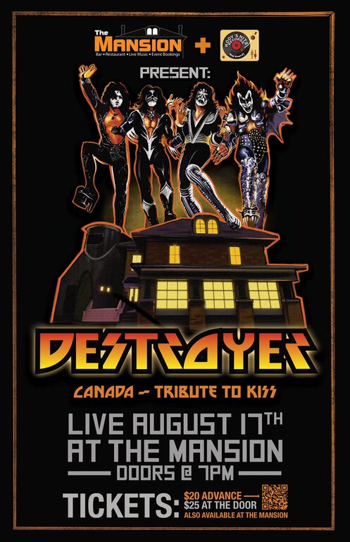 The Mansion's 15 year Anniversary Party: Destroyer Canada's KISS Tribute @ The Mansion Aug 17 2024 - Jan 1st @ The Mansion
