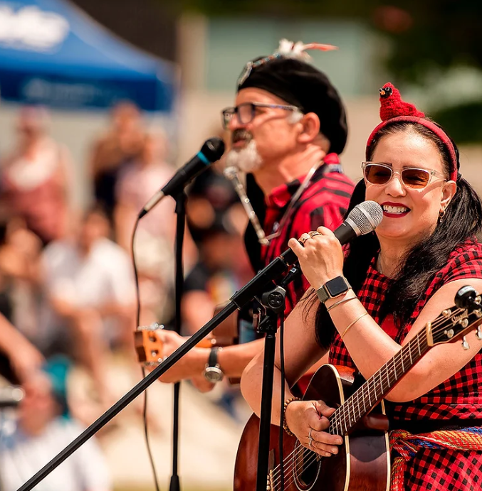 Panache Eh is an enthusiastic and dynamic musical duo that loves to have fun and entertain children and adults alike. The group enjoys performing classic French and English children's songs with humour and joy. The show includes plush friends, the puppets Lulu Rabbit and Albert Paca, who often come out to sing when given a little encouragement. Audiences of all ages are invited to join in the fun as they play ukulele, guitar, harmonica, dulcimer and tambourine. The best part is when the audience joins in as an improvised rhythm section, using instruments provided by the band!