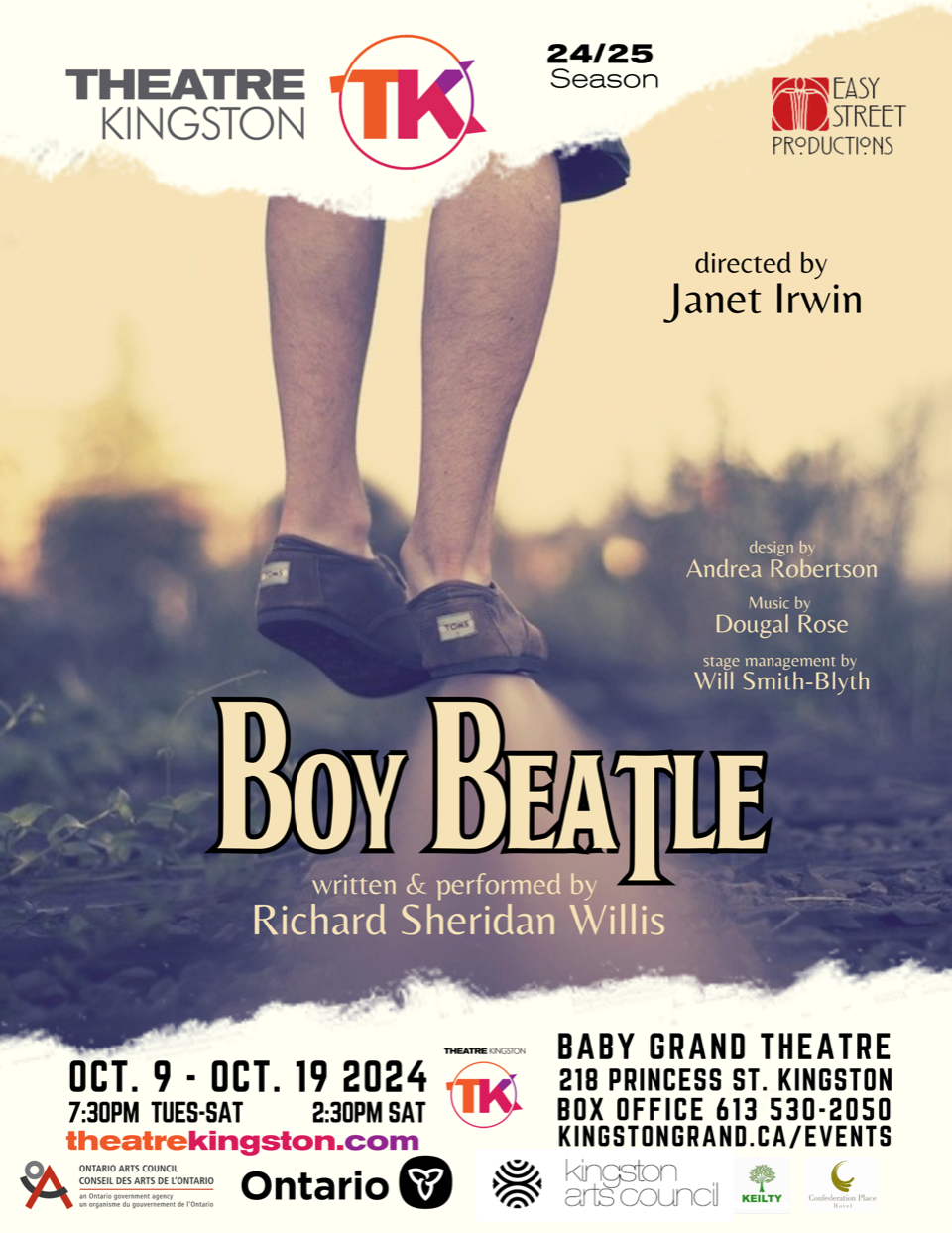 Meet Robin, a man who once dreamt of being a Beatle, now overwhelmed by life's relentless twists and turns. Once his passion and solace, music has slipped away, leaving him adrift. But hope isn’t lost! Enter The Haven, a whimsical sanctuary filled with eccentric characters—like James, who’s convinced he’s the next James Bond, and Andrew, perpetually saving imaginary damsels from perilous submarines. Guided by the spirited therapist Faith, Robin embarks on a fantastical journey back to his childhood, seeking to restore the harmony that once filled his life. A heartwarming, humorous, and unforgettable exploration of rediscovery and resilience! Richard Sheridan Willis returns to Theatre Kingston with his second solo play Boy Beatle. He last appeared as Henry Irving in Theatre Kingston’s 2022 production of These Deeds. The play is directed by veteran Canadian director, Janet Irwin.