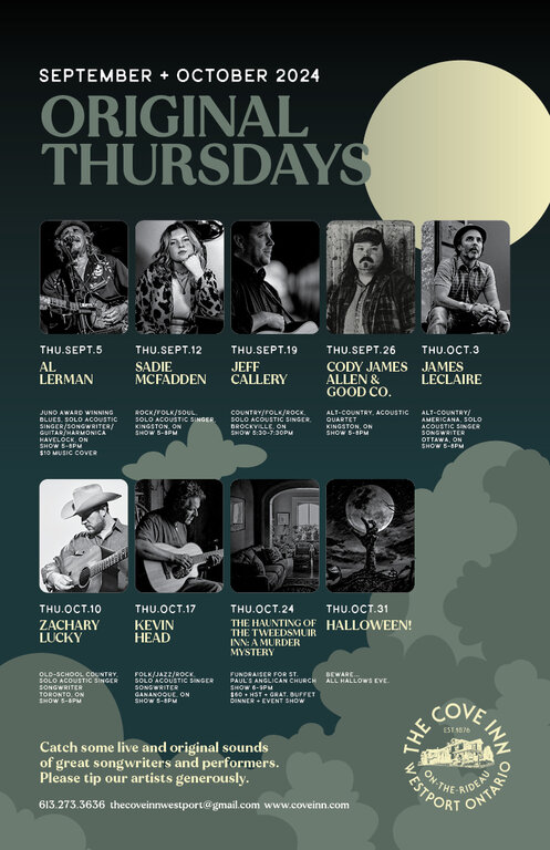 Thu. October 3rd 2024 The Cove Inn Westport Ontario By Donation