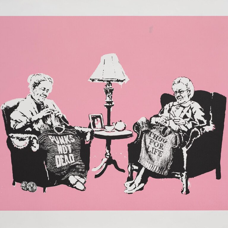 Image Credit: Banksy, Grannies (detail), 2006, screenprint on paper, ed. 496/500. Courtesy of the Paul and Tracy Mitchell Collection. Photo by Yuri Akuney, Digital Perfections.