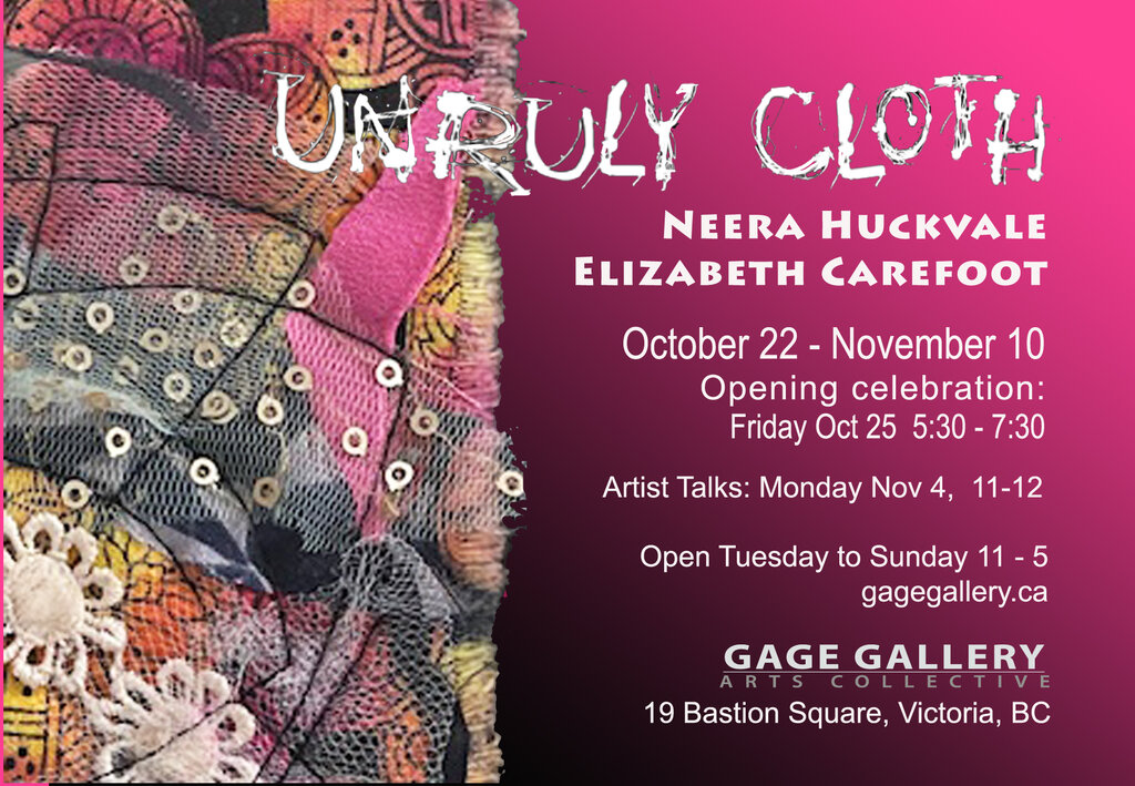 UnRuly Cloth: Neera Huckvale , Elizabeth Carefoot @ Gage Gallery Arts Collective Nov 10 2024 - Feb 24th @ Gage Gallery Arts Collective