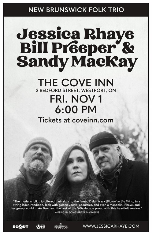New Brunswick folk trio Jessica Rhaye, Bill Preeper, Sandy MacKay return to The Cove Inn on Friday, November 1, 2024 6-9pm. They will be touring their new record, Wood & Wire!