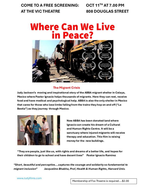 Judy Jackson’s moving and inspirational story of the ABBA migrant shelter in Celaya, Mexico where Pastor Ignacio helps thousands of migrants. Here they can rest, receive food and have medical and psychological help. ABBA is also the only shelter in Mexico that cares for those who lose limbs falling from the trains they hop on and oD (“La Bestia”) as they journey through Mexico.